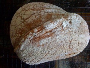 The bread itself is comparable to something you’d buy from a bakery. I used wholemeal flour, which means the loaf is a bit whole-mealy-boring tasting, so next time I’ll try to put some whole grains in there as well. But it’s certainly edible, which amazes me.